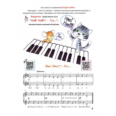 У другій діти знайомляться з нотним записом та виконують п’єси в межах першої октави.